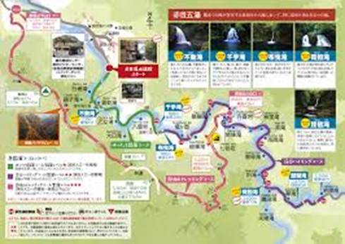 川沿いに48滝を巡る道は約4キロ。