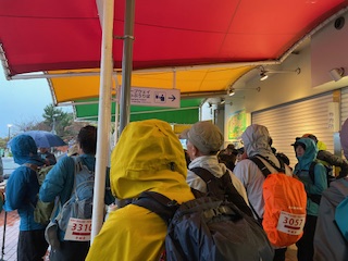 半縦走の出発は午前7時半なので、それ以前に会場に行っても、雨に打たれて待つだけですからね。