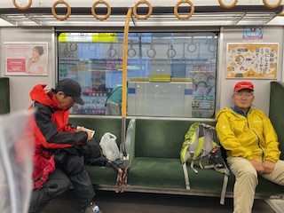 日曜日の午前7時前の電車はガラガラで、パラパラと登山の恰好をした乗客がいるだけでした。