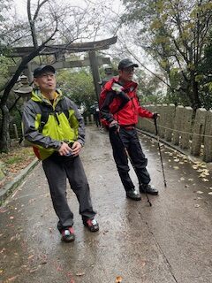 雨と泥に格闘しつつ、アップダウンの道を、なんとか高取神社までやってきました。