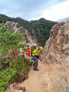 雨の日の「馬の背」は滑りやすくて危険なので、お互いの位置を確認しながら